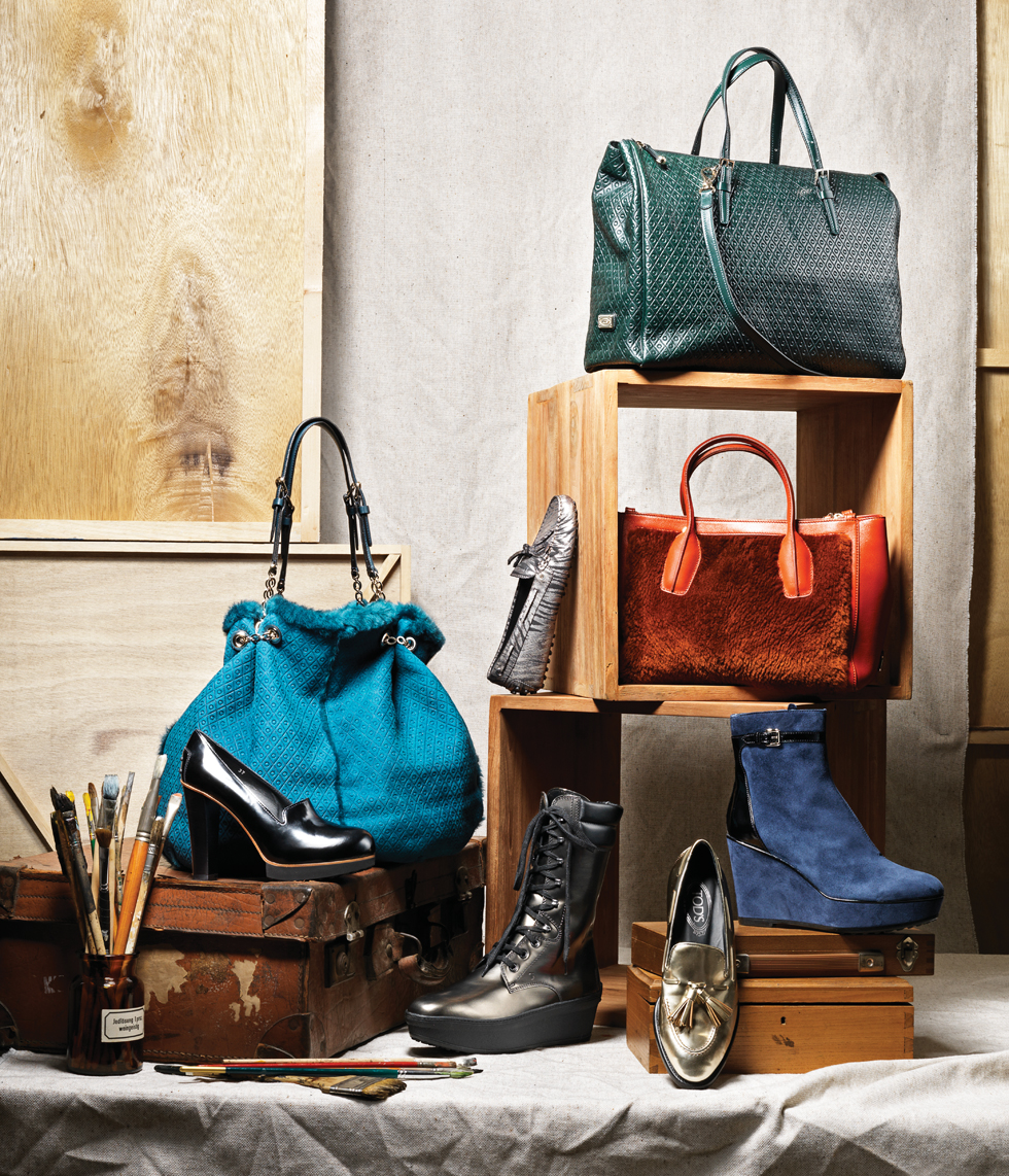 부드러운 양털로 포인트를 준 소가죽 뉴 D백 30X20cm 4백51만원. 웨지힐 형태로 편안한 착용감을 자랑하는 스트랩 디테일의 스웨이드 앵클부츠 1백16만원. 메탈릭한 컬러가 트렌디한 페이턴트 태슬 로퍼 77만원. 브론즈빛 메탈 컬러와 고무 플라토 밑창으로 재탄생한 브랜드 아이코닉 아이템 소가죽 윈터 고미노 90만원대. 군더더기 없이 매끈한 라인이 돋보이는 페이턴트 펌프스 1백만원대. 자연스럽게 주름이 잡히는 유연한 디자인으로 안감과 가방 라인에 양털로 포인트를 준 시그너처 빅 숄더백 30X30cm 가격 미정. 지브라 프린트를 메탈릭하게 표현한 고미노 드라이빙 슈즈 60만원. 모두 토즈.