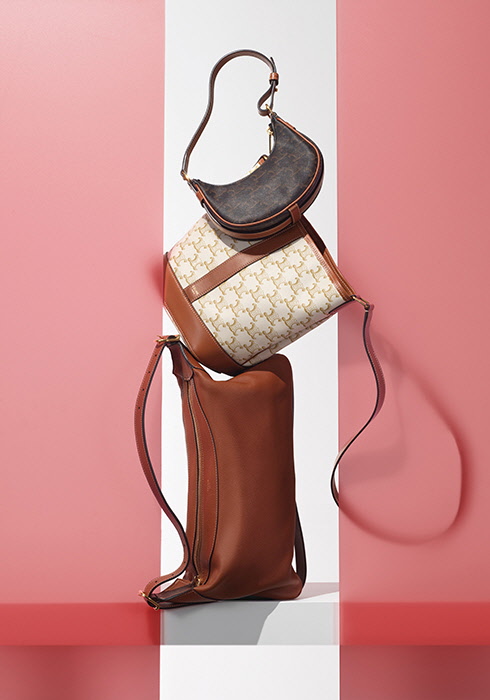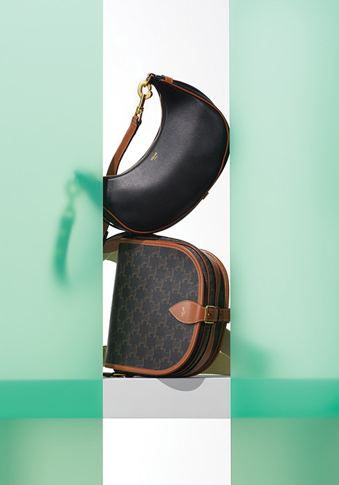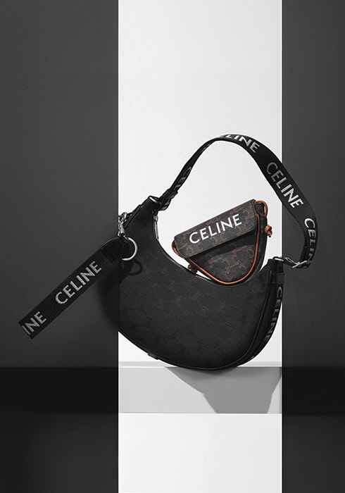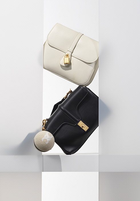 우아한 커브 라인으로 어깨에 무심한 듯 걸치기 좋은 초승달 모양의 셀린느 대표 백으로, 부드러운 송아지가죽의 고급스러움과 블랙에 브라운 라인을 추가한 클래식함이 매력적인 아바 백 2백63만원. 캐주얼하고 빈티지한 무드를 자랑하는 셀린느의 대표 백으로, 어느 룩에나 잘 어울리며 수납공간 역시 넉넉해 활용도가 높은 라지 폴코 스트랩 백 2백70만원. 모두 셀린느.