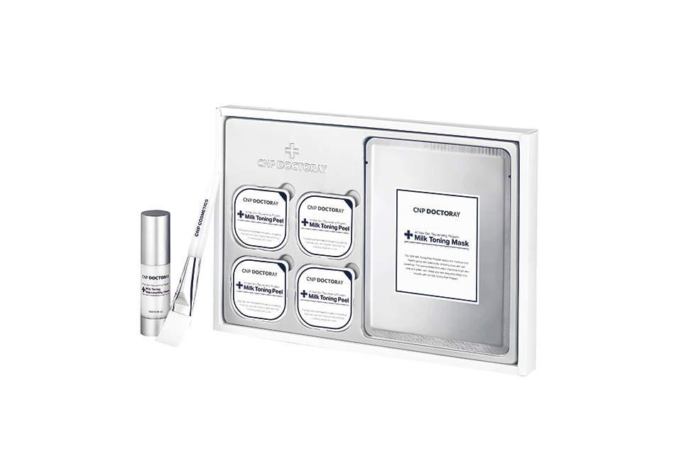 CNP차앤박화장품은 투명하고 맑은 피부로 가꿔주는 스킨케어 제품 ‘닥터레이 밀크 토닝 필 프로그램’을 소개한다.
