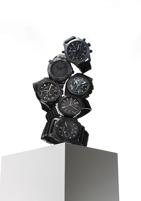 케이스와 푸시 버튼, 인덱스에서 시곗바늘까지 블랙 컬러를 입힌 올 블랙 워치. 수심 300m 방수 기능을 갖춘 무브먼트 칼리버 오메가 8806은 다이버 워치에 필수적인 기능을 모두 갖추고 있다. 탁월한 항자성과 헬륨 가스 배출 밸브를 통해 안정적인 기압을 유지하고, 최대 55시간의 파워 리저브를 지원한다. 안전 시스템을 적용해 충격으로부터 무브먼트를 보호해 높은 안전성과 정확성을 보장한다. 1천1백만원대. 문의 02-310-1270