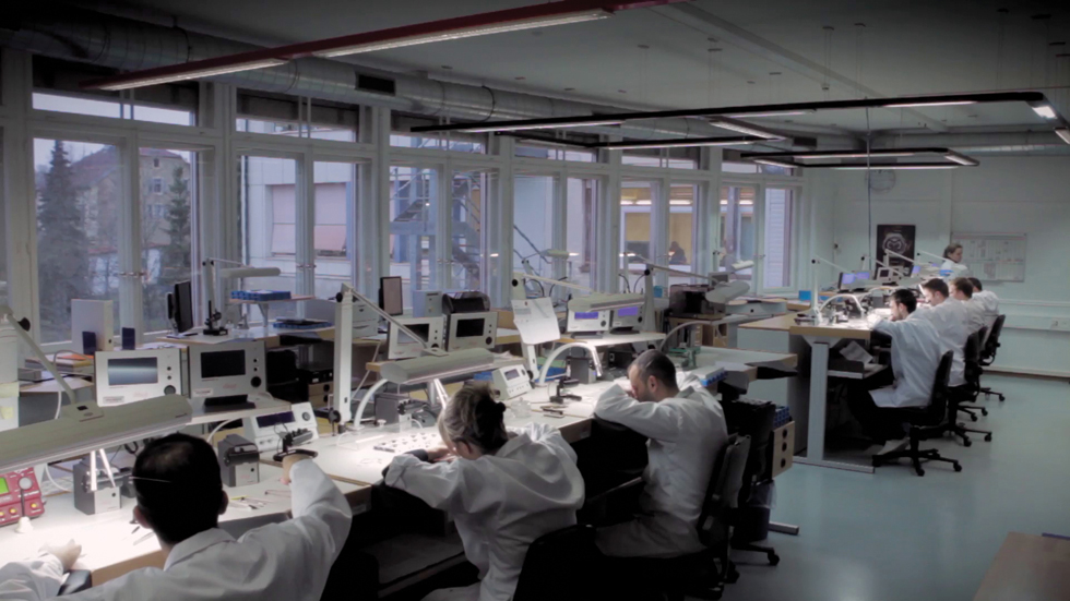 6 까르띠에의 시계 제조 술력이 응축된 스위스 라쇼드퐁의 매뉴팩처 전경. 2005년부터 인하우스 무브먼트 제작을 목표로 3만㎡의 부지 위에 세워진 이 거대한 매뉴팩처 안에는 평균적으로 총 1백75개 분야의 정밀한 시계 제조 과정이 테크니션들에 의해 매일 이루어진다.