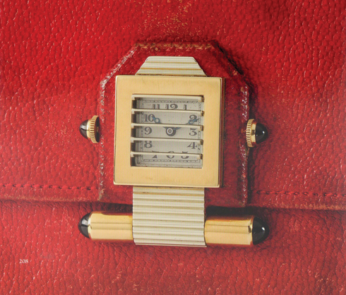 3 붉은색 모로코 가죽의 파우치에 장착된 셔터 워치. 양쪽의 피봇을 돌리면 셔터가 열리듯 다이얼이 모습을 드러낸다. 당시 우아한 여성들의 여행용 파우치에 사용되었다(1931년).