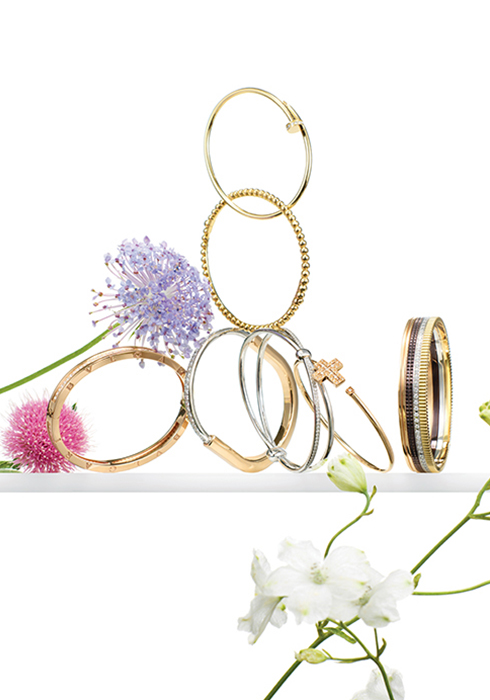 불가리 비제로원 브레이슬릿 로마의 장엄한 콜로세움에서 영감받은 혁신적이고 대담한 디자인이 특징으로, 로즈 골드 소재에 다이아몬드를 파베 세팅한 뱅글이 볼드하고 쿨한 매력을 선사한다. 2천5백60만원. 문의 02-2056-0170