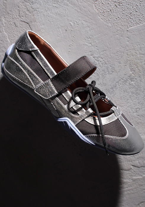 베네데타 보롤리는 밀라노 기반의 브랜드로 고품질 가죽과 독창성, 그리고 무엇보다 편안함을 핵심 가치로 삼는다. 모든 제품은 밀라노 북쪽의 파라비아고에서 제작되며, 탄탄한 내구성과 함께 신발을 구성하는 각 요소가 정교하게 어우러져 높은 완성도를 자랑한다. 주요 모델로는 유니크한 굽과 깔끔한 실루엣이 돋보이는 에드나(Edna), 스니커즈와 발레리나 슈즈를 통합한 스니커리나(Sneakerina) 등이 있다. 특히 스니커리나는 2cm 내부 힐과 유연한 솔 구조로 가벼운 착용감과 안정성을 동시에 제공하며, 브랜드를 상징하는 컬렉션답게 다양한 라인업을 갖추었다. 발등을 부드럽게 감싸는 비앙카 스니커리나 크로스(Bianca Sneakerina Cross), 클래식한 메리제인 디자인에 실용적인 기능을 더한 비앙카 스니커리나 메리제인(Bianca Sneakerina Mary Jane), 레이스업 디테일을 가미한 비앙카 스니커리나 레이스(Bianca Sneakerina Laces) 등이 대표적이다. 모든 소재는 혁신적인 네오프렌과 스페인 장인 정신을 결합해 뛰어난 신축성을 갖췄으며, 발의 형태와 크기에 구애받지 않는다. 여기에 이탈리아산 프리미엄 가죽과 스페인 장인의 사케토(Sacchetto) 공법을 더해 마치 양말을 신은 듯한 극도의 편안함을 구현한다. 슈즈 라인을 따라 이어지는 세밀한 손 스티칭 또한 완성도를 높이는 핵심 요소로, 디테일을 중시하는 브랜드의 철학을 고스란히 보여준다.