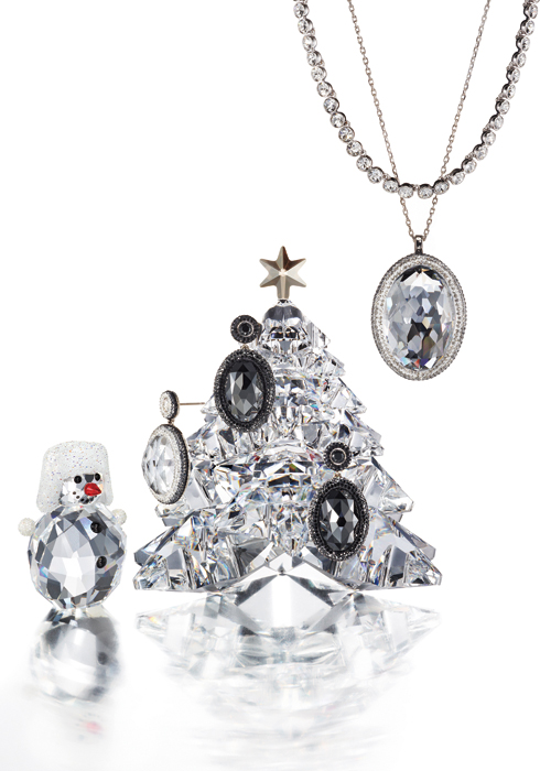 눈부신 크리스털 커팅이 돋보이는 트리와 눈사람 오브제 각 18만5천원, 12만원. |