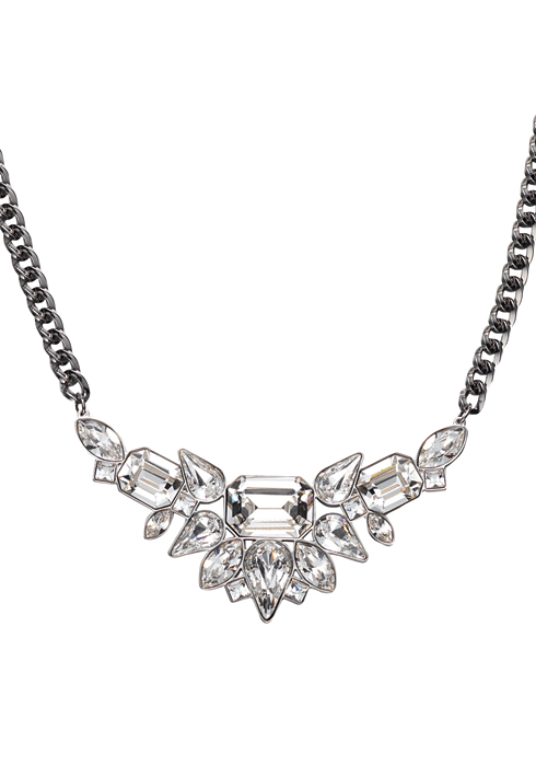 다양한 형태의 크리스털 스톤으로 광채를 극대화한 네크리스. 27만원. |