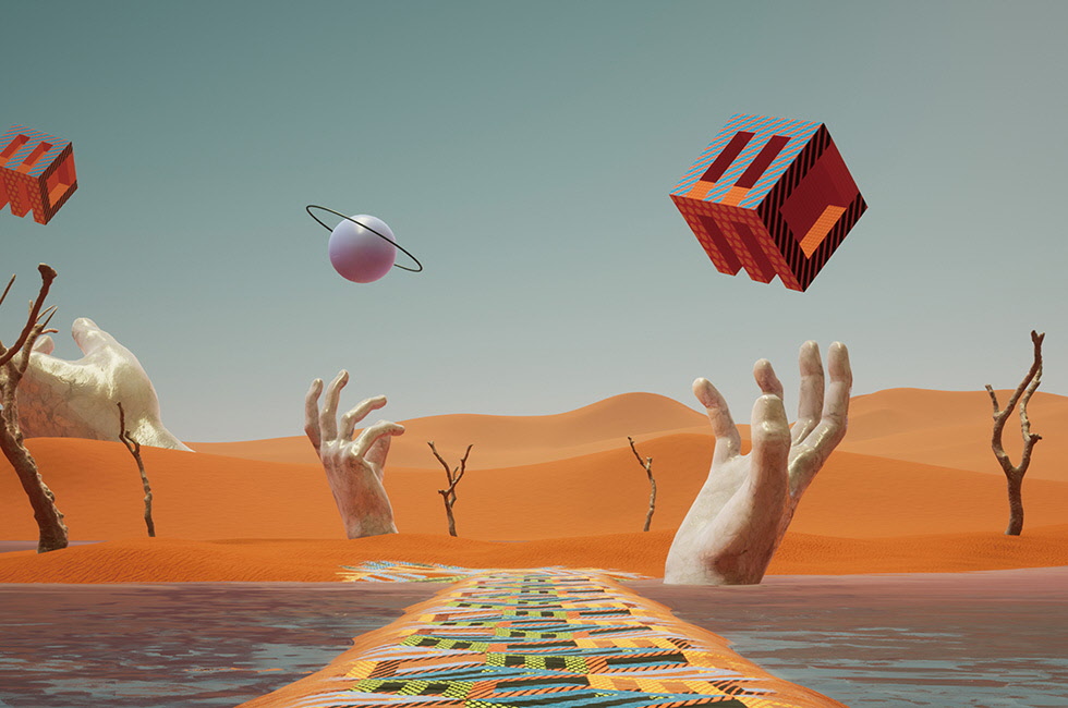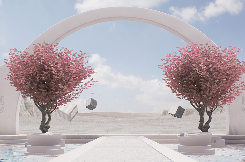 1, 2 MCM 창립 45주년을 기념하며 청담 플래그십 스토어 ‘MCM HAUS’에서 선보인 메타버스의 XR 이미지. 큐빅 모노그램을 테마로 가상 세계를 창조했다. 3 큐빅 모노그램 컬렉션 광고 캠페인. 4 큐빅 모노그램 자카드 캡. 5 아프레스키 오가닉 프린트 스웨트셔츠. 6 큐빅 모노그램 자카드 미니 숄더백.