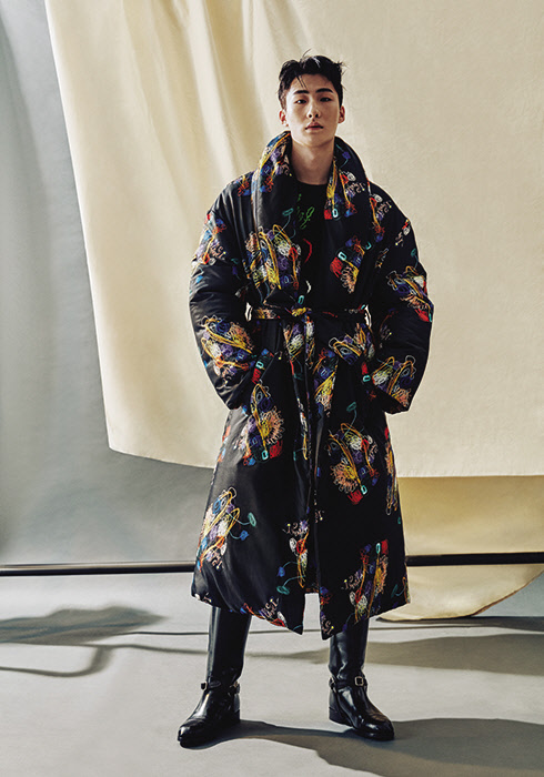 실크 패딩 코트 5백만원대, 블랙 컬러 니트 톱 1백만원대, 블랙 컬러 팬츠 80만원대 모두 펜디. 블랙 컬러 레더 부츠 2백59만원 구찌. |