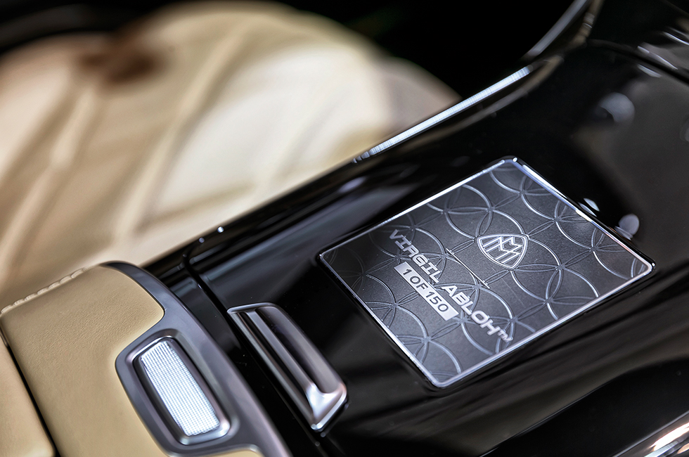 3 도어 실 패널 곳곳에 새긴 특별한 메르세데스-마이바흐 및 버질 아블로 로고.
