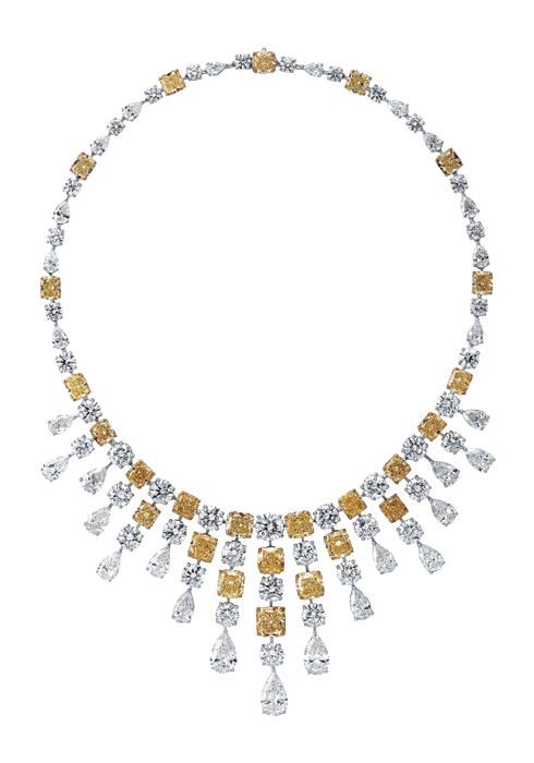 5 옐로와 화이트 다이아몬드 세팅만으로 하이 주얼리의 가치를 극대화한 우아한 멀티 셰이프 네크리스.