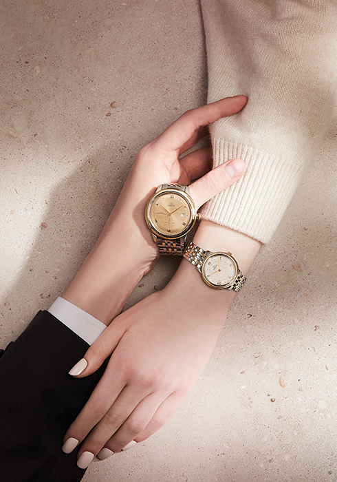 스테인리스 스틸 소재 케이스에 세로 형태의 스탬핑 랜덤 패턴의 PVD 라벤더 다이얼이 은은한 고급스러움을 선사하며, 로듐 도금 핸즈와 교차 배열한 로마숫자, 다이아몬드 마커로 디스플레이를 장식하고 6시 방향에 날짜창을 매치한 드 빌 프레스티지 코-액시얼 마스터 크로노미터 34MM 6백10만원, 18K 세드나™ 골드 소재 케이스와 태양광 패턴 마감 처리한 돔형 PVD 다크 블루 다이얼의 조화가 돋보이며, 3시 방향에 날짜창, 6시 방향에 스몰 세컨즈 서브 다이얼을 적용하고 55시간의 파워 리저브를 자랑하는 칼리버 8802 무브먼트를 장착한 드 빌 프레스티지 코-액시얼 마스터 크로노미터 스몰 세컨즈 41MM 1천6백70만원 모두 오메가. 문의 02-6905-3301