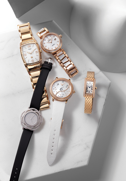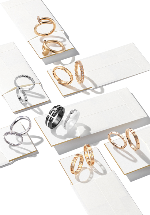 Stylish Layering Rings(왼쪽 위부터 시계 방향으로) 러브 컬렉션의 스크루 모티브와 함께 브라운 세라믹 밴드로 포인트를 준 러브 링. 3개의 링이 한 세트로 7백만원대, 러브 컬렉션의 상징인 스크루 모티브에 핑크 사파이어를 세팅한 핑크 골드 러브 링 3백만원대 모두 까르띠에. 3.11캐럿의 라운드 컷 다이아몬드와 핑크 다이아몬드의 조화가 사랑스러운 레거시 세팅 링 가격 미정 그라프. 다이아몬드 밴드를 포함해 브랜드를 상징하는 모티브의 밴드가 조화를 이룬 콰트로 레디언트 에디션 옐로 골드 링 1천만원대 부쉐론. 오픈워크 기법으로 동백꽃을 모던하게 표현한 까멜리아 아주르 화이트 골드 링 5백만원대 샤넬 화인주얼리. 꽃잎을 연상케 하는 마키즈 컷 다이아몬드와 라운드 컷 다이아몬드를 순차적으로 배열한 빅토리아 링 2천3백만원대, 섬세하게 세공한 두 줄의 밧줄 모티브와 다이아몬드의 조화가 돋보이는 투 로우 로프 링 8백만원대, 볼드한 밴드에 라운드 컷 다이아몬드를 섬세하게 세팅한 메트로 파이브 로우 링 1천2백만원대 모두 티파니. 생명력 넘치는  밀 이삭 패턴 밴드에 다이아몬드를 세팅한 스피가 브라이덜 솔리테어 링 1캐럿 기준 3천만원대, 밴드 라인을 따라 다이아몬드를 세팅한 핑크 골드 이터니티 밴드 링 3백만원대 모두 불가리. 꽃봉오리를 연상케 하는 아코야 진주 사이에 다이아몬드를 세팅한 인블룸 링 0.5캐럿 기준 1천5백만원대 타사키. 플래티넘에 브릴리언트 다이아몬드를 세팅한 까르띠에 웨딩 밴드 1천3백만원대 까르띠에. Classic Men’s Watches(왼쪽부터 시계 방향으로) 까르띠에 발롱 블루 드 까르띠에 엑스트라 플랫 워치 시그너처 워치인 발롱 블루를 세련된 디자인으로 재해석한 18K 화이트 골드 워치. 케이스 두께가 반으로 줄어들 만큼 확연하게 얇아진 2.1mm의 무브먼트와 7.05mm의 케이스에서 진보된 기술력을 엿볼 수 있다. 3천만원대. 몽블랑 헤리티지 문페이즈 골드 몽블랑 마이스터스튁 만년필 탄생 90주년을 기념하는 문페이즈 워치. 낮과 밤을 표시하는 문페이즈 기능을 적용해 완성도를 높였다. 1천8백만원대. 오데마 피게 로열 오크 팔각형 베젤의 세련된 다이얼이 인상적인 오토매틱 워치. 완성도 높은 화려한 피니싱에서 독보적인 기술력을 확인할 수 있다. 2천2백만원대. 위블로 클래식 퓨전 크로노그래프 킹 골드 위블로만의 독특함을 담은 18K 킹 골드 케이스와 러버 위에 덧댄 앨리게이터 스트랩의 조화에서 강인한 힘이 느껴지는 크로노그래프 워치. HUB1143 오토매틱 메캐니컬 무브먼트로 42시간 파워 리저브가 가능하다. 4천만원대. 제니스 캡틴 윈저 시간당 3만6천 회 진동하는 전설적인 무브먼트인 엘 프리메로 400B 칼리버를 탑재한 컴플리케이션 워치. 간결한 다이얼 디자인 덕분에 날짜·월·요일로 이루어진 애뉴얼 캘린더를 쉽게 읽을 수 있다. 2천8백만원대. 크로노스위스 시리우스 빅 데이트 기요셰 패턴을 새긴 다이얼과 작은 양파 모양 용두로 브랜드 고유의 아이덴티티를 살린 스틸 워치. 12시 방향에 가독성이 뛰어난 날짜 표시 창을, 6시 방향에 40시간 파워 리저브를 확인할 수 있는 창을 배치했다. 6백90만원.