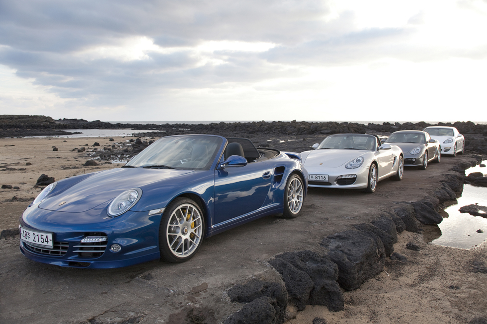 포르쉐는 올해 국내에서 소개한 3세대 카이엔과 파나메라 V6 모델을 비롯한 카이엔과 파나메라 시리즈가 수입차 시장에서 좀 더 많은 고객에게 포르쉐를 알리는 데 훌륭한 메신저 역할을 하고 있지만, 뭐니 뭐니해도 포르쉐의 아이덴티티를 가장 명확히 읽을 수 있는 것은 스포츠카 라인이다. 물론 카이엔이나 파나메라도 각각 SUV와 럭셔리 세단이라는 세그먼트 안에서 포르쉐 스포츠카의 심장을 지닌 다이내믹하고 스마트한 성능을 뽐내지만, 스포츠카 그리고 포르쉐의 즐거움을 고스란히 느끼기 위해선 포르쉐의 스포츠카 라인을 직접 운전해보는 것만 한 경험은 또 없을 터. 이번 Driving Excitement: Porsche 행사에 참여한 포르쉐 모델은 총 6개 차종으로, 박스터 S와 카이엔 S, 911 카레라 S, 카레라 4S, 911 터보 S 카브리올레 그리고 파나메라 4, 파나메라 터보가 그들이다. 여기에, 행사 기간 동안 행사의 베이스 캠프였던 제주 신라 호텔 풀 사이드에는 지난 5월 론칭한 박스터 스파이더가 전시되어 행사 관계자뿐 아니라 호텔을 찾는 일반 고객에게까지 포르쉐를 알릴 수 있는 기회로 삼았다.