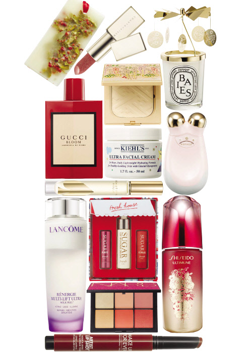 립 보습 제품 중 가장 애정하는 프레쉬 슈가 립밤 2종과 립 트리트먼트 젤로 구성한 홀리데이 기프트 세트. 은은하고 자연스러운 발색, 극강의 보습력을 자랑하는 슈가 코랄 립 트리트먼트는 2.2g, 가벼운 텍스처가 매력적인 슈가 립 원더 드롭 어드밴스트 테라피는 5ml의 미니 사이즈로 담았다. 6만원대. 문의 080-822-9500 _by 에디터 이혜미