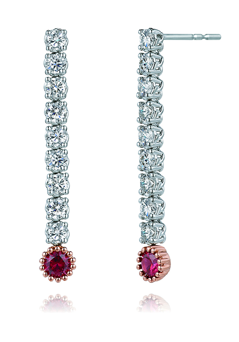 7 울트라 브라이트 컷 다이아몬드와 루비로 하얀 설원 속에 핀 아름다운 꽃송이를 묘사한 몬테비앙코 이어링.