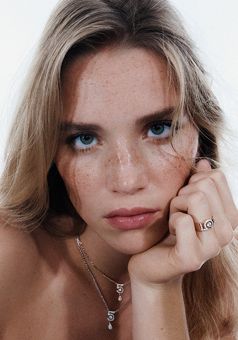 부드럽고 고급스러운 무드가 특징인 18K 베이지 골드 소재에 0.25캐럿의 라운드 컷 다이아몬드를 센터 스톤으로 세팅하고 총 0.21캐럿의 19개 라운드 컷 다이아몬드를 세팅한 ETERNAL N°5 링, 차분하고 우아한 느낌을 선사하는 총 0.38캐럿의 24개 라운드 컷 다이아몬드를 세팅한 18K 베이지 골드 소재의 ETERNAL N°5 네크리스, 총 0.39캐럿의 25개 라운드 컷 다이아몬드를 세팅하고 심플하고 깨끗한 느낌을 전하는 18K 화이트 골드 소재의 ETERNAL N°5 네크리스. |