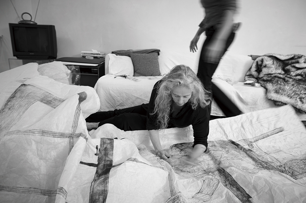 전시장에는 사람과 동물, 우주와 식물 등이 어우러진 대형 태피스트리 작품도 걸려 있는데, 모든 것들과 화합하고 싶다는 그녀의 소망 어린 ‘기도’처럼 명상적으로 느껴진다. “사실 매일 밤 여성주의 작가분들을 위해 기도합니다. 저는 68세인데, 제 주변을 둘러보면 80대에 접어들어 갑자기 여성주의 작가로 찬사 받고 커뮤니티에 여성 작가로 추앙받는 동료 작가들의 모습을 보기도 합니다. 하지만 그들은 이미 지난 60년 동안 집 안에 틀어박혀서 자기 작업을 해온 사람들이기도 합니다. 예술이라는 것은 사실 스스로 선언하는 것이고요. 말하자면 어느 날 아침에 일어나서 ‘내가 작가입니다’라고 선언하는 것이기도 합니다. 누군가가 그것을 스스로 감당할 수만 있다면 말입니다.”