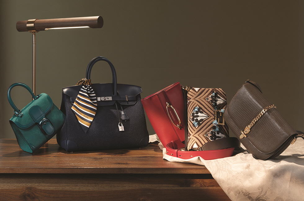 누벅 소가죽으로 코듀로이 효과를 낸 브리앙 미니 백. 앙증맞은 사이즈 덕분에 포인트 아이템으로 제격이다. 6백24만원 델보. 울 펠트 소재로 실용성을 강조한 버킨 35 백. 핸들과 플랩에는 특유의 스위프트 카프 스킨을 적용해 고급스러움을 살렸다. 1천4백37만원 에르메스. 버킨 백에 매치한 실크 소재 오 갤롭 맥스 트윌리 스카프 43만원 에르메스. 매끈한 송아지가죽으로 완성한 스토리 백. 자석 원리를 적용한 더블 플랩 잠금장치로 쉽게 여닫을 수 있으며, 고리 형태의 메탈 장식으로 이브닝 클러치 백으로 연출할 수 있다. 2백78만원 알렉산더 맥퀸. 섬세하게 수놓은 플로럴 임브로이더리 장식이 인상적인 바게트 백. 은은하게 빛나는 새틴 소재로 우아한 분위기를 자아낸다. 6백85만원 펜디. 차분한 다크 올리브 그린 컬러가 고급스러운 실버1969 백. 질감이 살아 있는 리저드 가죽 가방 중앙에 얇은 체인 장식을 더해 포인트를 주었다. 9백20만원 구찌.