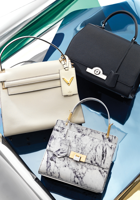 부드럽게 흐르는 곡선이 우아한 레잔 백. 30X20cm, 6백41만원 모아나 by 분더샵. 군더더기 없이 깔끔한 화이트 컬러 마이 락스터드 백. 30.5X26cm, 3백30만원 발렌티노. 송아지가죽 소재에 대리석 패턴을 더한 르 디스 마블 애니메이션 백. 24X22.5cm, 2백만원대 발렌시아가.