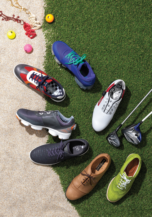 메시 소재를 활용해 통풍 기능을 강화한 블루 컬러의 골프화. 요즘같이 더운 날씨에 오랜 시간 착용해도 땀이 차지 않는다. 필드 상황에 맞게 스파이크를 교체할 수 있어 실용적이다. 20만9천원 데상트 골프. 문의 02-2143-7631. 레드·오렌지·블랙 컬러의 조화가 돋보이는 골프 슈즈. 비브람 솔을 적용해 안정된 자세를 유지할 수 있다. 견고한 스파이크가 걸을 때 충격을 흡수해 발을 편안하게 해준다. 32만8천원 먼싱웨어. 문의 02-2007-8820. 거미줄 모양의 디자인이 눈길을 사로잡는 골프화. 쿠션감과 유연성을 자랑하는 EVA 핏베드, 신발 끈 대신 다이얼을 사용해 착용자의 발에 딱 맞게 만들어주는 보아 레이싱 시스템까지. 골프화의 첨단 기술을 모두 느껴보고 싶은 이들에게 추천한다. 26만원 풋조이. 기하학 패턴과 세련된 컬러가 인상적인 골프화. 메시 소재 안감이 통기성을 높여 발에 땀이 많은 사람들에게 적합하다. 발등의 스트랩은 밀착감을 높여주며 유행을 타지 않는 클래식한 디자인으로 일상생활에서 착용해도 멋스럽다. 35만원 엘로드. 문의 02-3677-8831. 부드러운 브라운 컬러 소가죽 골프화. 스포티한 디자인의 골프화보다는 차분하고 클래식한 스타일을 선호하는 골퍼들에게 추천한다. 발목을 감싸는 부분을 메모리폼으로 제작해 발목에 무리가 가지 않으며, 감각적인 디자인이 비즈니스 룩으로도 손색없다. 39만원 풋조이. 문의 02-3014-3800. 잔디를 닮은 그린 컬러 스웨이드 슈즈. 발을 부드럽게 감싸고 앞코에 장식한 펀칭 디테일이 고급스러움을 더한다. 6시간 방수가 가능한 로투쎄만의 특수 소가죽으로 만들어 우천 후 경기 시에도 문제없다. 53만원 로투쎄 by 란스미어. 문의 02-542-4177. 러닝화와 축구화처럼 스포츠 신발로 유명한 미즈노제넴 005 보아 골프화. 깔끔한 화이트 컬러가 매력적인 제품으로, 오래 서서 경기하는 골프 특성에 맞추어 발과 신발의 일체감을 높임으로써 안정성과 편안한 착용감을 더했다. 30만원 미즈노문의 02-3143-3358.