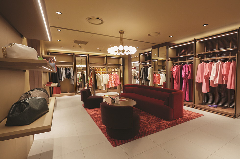 매장 인테리어는 브랜드의 아이덴티티를 그대로 느낄 수 있도록 전면에 가죽 위빙과 마호가니나무를 입체적으로 활용했다. 들어서는 순간 마치 럭셔리한 타운하우스 혹은 부티크에 초대받은 듯한 느낌이 든다. 고급스러운 라운지와 피팅 룸은 존스만의 독보적인 프리미엄 감성이 살아 있는 공간으로, 특유의 타임리스 클래식 무드와 잘 어울린다. 매장 디스플레이는 라인이 아니라 다섯 가지 컬러로 구분해 소비자가 선호하는 컬러 칩을 쉽게 찾을 수 있도록 구성했다. 오픈 첫날임에도 독보적인 아름다움을 발산하는 분위기에 이끌려 존스 매장을 찾는 손님들이 줄을 이었다. 존스의 아이덴티티 컬러인 강렬한 버건디와 짙은 브라운은 매장에 무게감과 우아함을 동시에 선사한다. 소파와 테이블 등 가구의 부드러운 곡선은 존스의 정체성을 대변하고, 매장에 들어서서 고유의 무드를 느끼고 존스의 옷을 걸치는 순간 브랜드가 창조한 페르소나를 덧입게 된다. 컬렉션은 물론 매장 인테리어에도 시간이 흘러도 변치 않는, 모든 세대가 한 번쯤 갈망하는 프리미엄 브랜드를 향한 정구호 크리에이티브 디렉터의 고민이 녹아 있다. 존스가 밟아나갈 완성도 높은 브랜드로의 여정이 기대되는 이유다. 문의 신세계백화점 강남점 02-3479-1321