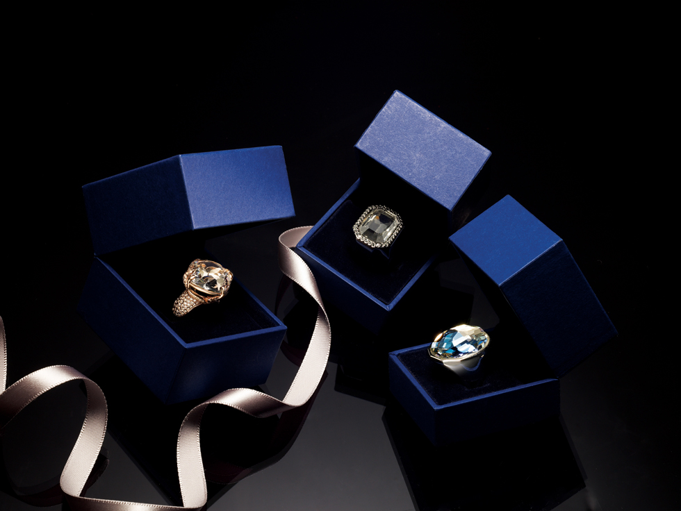 현대적인 디자인의 마리에 링. 현란하게 브릴리언트 커팅된 크리스털을 사용해 반짝임을 극대화했다. 21만5천원. 모두 스와로브스키.