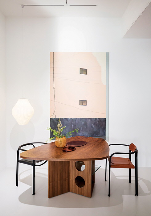 1 나무 줄기와 모던한 디자인이 조화로운 D42 바이센호프 암체어 3백만원대 텍타. 2 수납공간이 있어 활용도가 높은 K8B 카우치 테이블 2백만원대 텍타. 꼬임 장식이 독특한 오브제 ‘겹 덩어리’ 4Pcs 세트 2백50만원 윤정희 작가 작품. 3 공간을 매력적으로 채워줄 스탠딩 모빌 20만4천원 볼타.