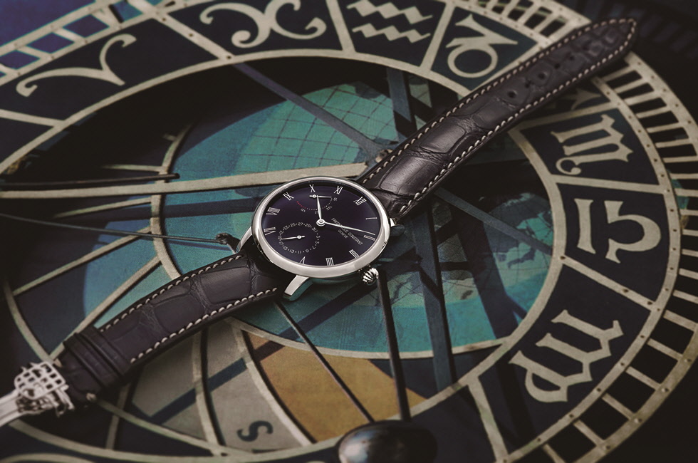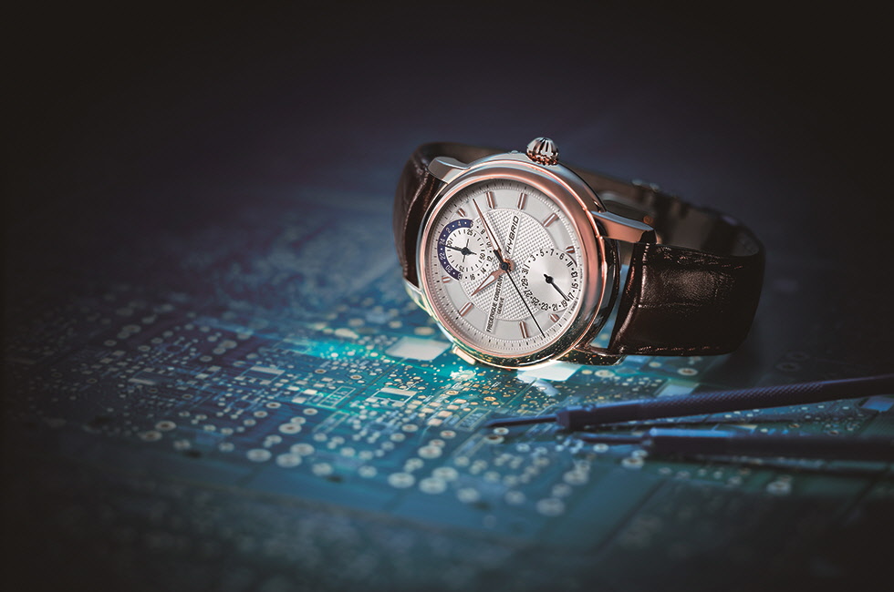 클래식한 디자인의 커넥티드 워치. 자사 매뉴팩처에서 개발 및 생산한 하이브리드 칼리버 FC-750을 탑재했다. 기계식 시계와 동일한 방식으로 동력을 얻고 시, 분, 초, 날짜를 표시하지만 케이스 왼쪽에 위치한 푸셔 버튼으로 블루투스와 연결하면 스마트폰과 연동할 수 있다. 이를 통해 수면, 활동 패턴 등의 라이프스타일 정보를 분석하고 알림 기능을 제공할 뿐만 아니라 월드 타이머 기능을 갖춰 2개의 시간대를 동시에 확인할 수 있다.