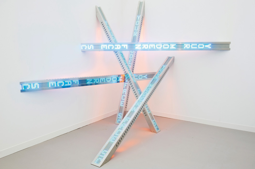 부스가 빼곡히 들어찬 전시장 한가운데 침실 6개가 생겼다. 베개, 이불까지 완비! 침대마다 갤러리 부스 수백 개를 돌다 예술에 ‘물린’ 관람객들이 하나둘 침대 위에 널브러졌다. 중요한 건 거미줄처럼 콘센트 곳곳에 꽂혀 있는 스마트폰 충전기다. 살짝 눈 붙이고 허기 채우듯 스마트폰을 충전하며 관람객들은 집에서처럼 휴식을 취한다. 이 작품은 영국 아티스트 그룹 ‘AYR’이 가장 사적인 공간인 침실까지 남과 공유하게 하는 숙박 공유 사이트 ‘에어비앤비’에서 착안해 만든 작품 ‘Comfort Zone’이다. 잠자면서도 스마트폰을 곁에 둬야 안심하는 디지털 시대의 서글픈 초상이기도 하다.