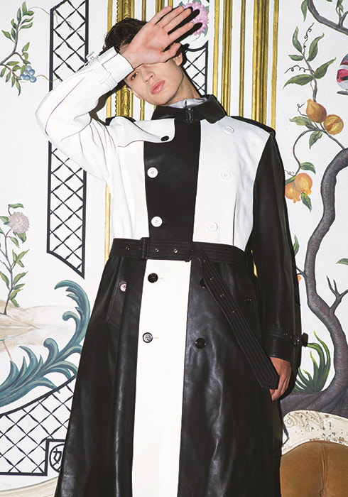 블랙 & 화이트 레더 코트 1천1백90만원, 패턴 톱 74만원 모두 버버리.