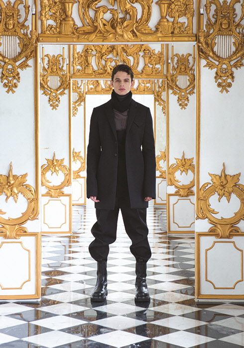 블랙 재킷 가격 미정, 니트 터틀넥 가격 미정, 시스루 터틀넥 가격 미정, 팬츠 1백53만원, 부츠 1백26만5천원 모두 보테가 베네타.