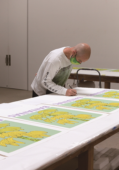 W 맞아요. 전 판화를 사랑합니다. 판화와 드로잉은 페인팅 작업을 하는 데 큰 도움이 돼요. 반대의 경우도 마찬가지고요. 둘 다 어떤 길을 가야 할지 고민하는 데 도움을 주고, 저로 하여금 많은 것을 시도하게 해주는 듯해요. 그래서 판화 작업으로 여러 실험을 할 수 있다는 것은 굉장한 일입니다. 저만의 판화를 제작하는 것을 좋아하고, 그래서 프린트 하우스를 소유하고 있습니다. 모든 사람은 판화를 해봐야 한다고 생각해요.