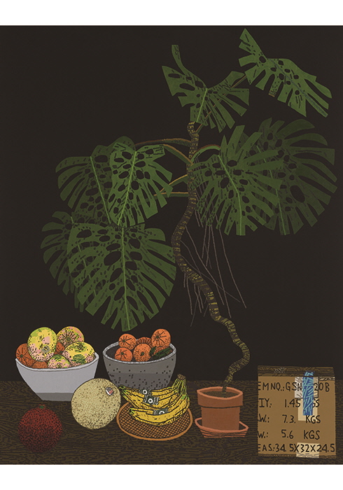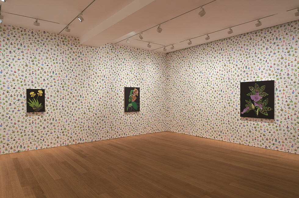 S 검은색 바탕으로 작업했던 예전 작업 ‘Polka Dot Orchid’(2015)를 다시 접하게 되면서, 이번 전시에서 검은 배경을 활용한 작업을 선보이고 함께 설치하는 구성에 대해 고민했다고 들었습니다. 검은색 배경의 정물화를 다시 시작한 데는 이유가 있을 것 같은데, 평소 자주 사용하는 컬러풀한 색감과는 정반대인 검은색의 어떤 부분이 흥미를 유발했는지 궁금하군요.