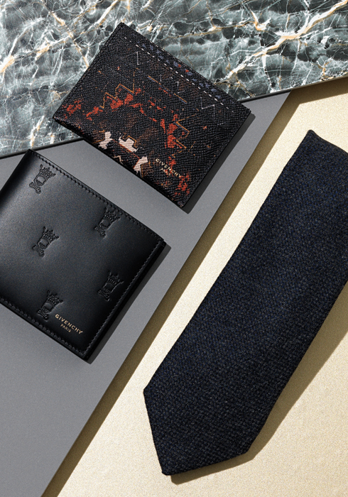 (왼쪽 아래부터 시계 방향으로) 왕관을 쓴 해골 모티브가 위트 있는 지갑 67만원, 고대 벽화를 연상케 하는 프린트의 카드 지갑 37만원 모두 지방시.