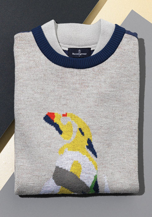 단독으로 착용해도 부드러운 펭귄 모티브의 라운드넥 니트 31만8천원 먼싱웨어.