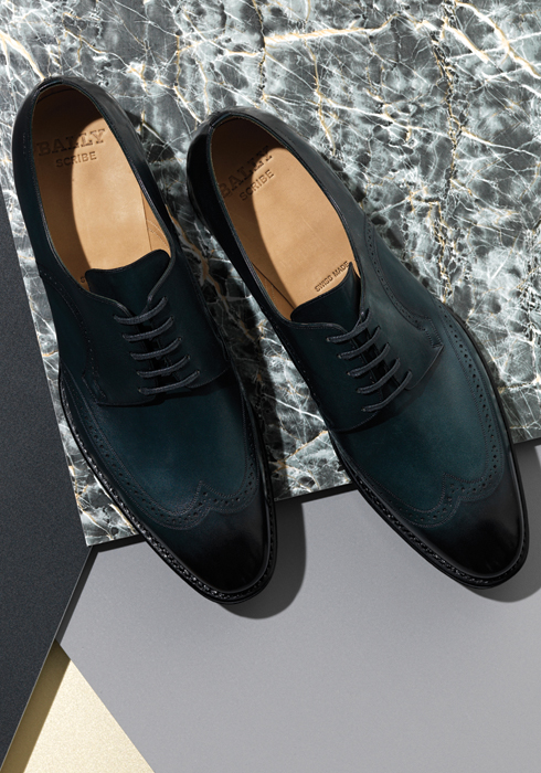그러데이션 처리한 다크 그린 컬러가 멋스러운 레이스업 슈즈 1백30만원 발리.