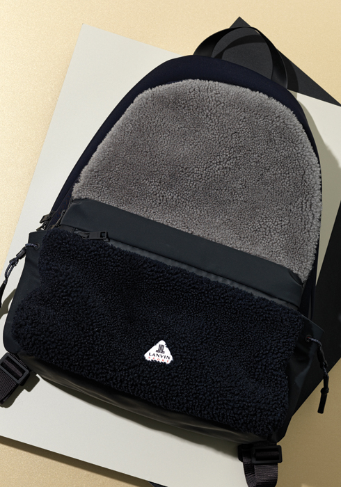 양털 소재로 유니크함을 더한 백팩. 33X43cm, 52만원 랑방스포츠.