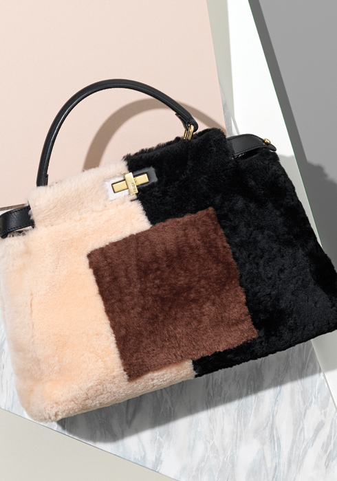 포근한 양털로 만든 컬러 블록 피카부 백. 37X22cm, 7백47만원 펜디.