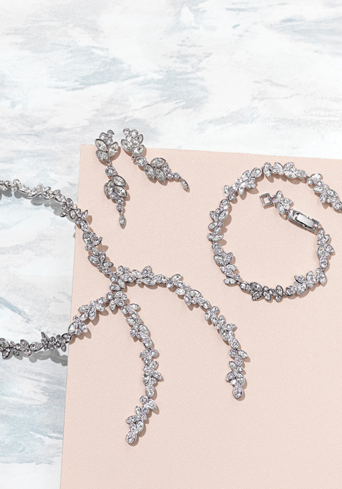 (왼쪽부터) 아름다운 첫눈의 눈꽃송이에서 영감을 받은 디아파종 컬렉션 네크리스 46만원, 이어링 16만5천원, 브레이슬릿 21만5천원 모두 스와로브스키.