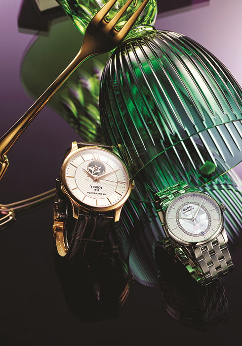 (왼쪽부터) 다이얼을 통해 더욱 강력해진 파워매틱 80 무브먼트의 파워풀한 움직임을 감상할 수 있는 트래디션 오픈 하트 남성 워치 85만원 티쏘. 문의 02-3129-8237. 프랑스 렌에 위치한 오페라하우스의 둥근 건축물을 형상화한 바론첼리 프리즈마 여성 워치. 다이얼에 세팅한 51개의 다이아몬드와 25개의 머더오브펄 조각으로 완성한 영롱한 빛의 큐브 패턴이 아름답다. 1백30만원대 미도. 문의 02-3479-6230
