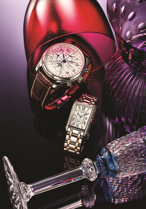 (위부터) 크로노그래프는 물론 24시간 월드 타임존, 파워 리저브, 문페이즈 기능을 갖추어 하이컴플리케이션 워치 마니아는 물론 출장이 잦은 비즈니스맨에게도 제격인 42mm 론진 마스터 컬렉션 남성 워치 4백만원대. 부드러운 셰이프의 직사각형 케이스와 18K 핑크 골드와 스테인리스 스틸 콤비로 이루어진 브레이슬릿이 우아함을 극대화하는 론진 돌체비타 여성 워치. 베젤에 46개의 다이아몬드를 세팅해 화려함을 더했다. 4백만원대. 모두 론진. 문의 02-310-1597