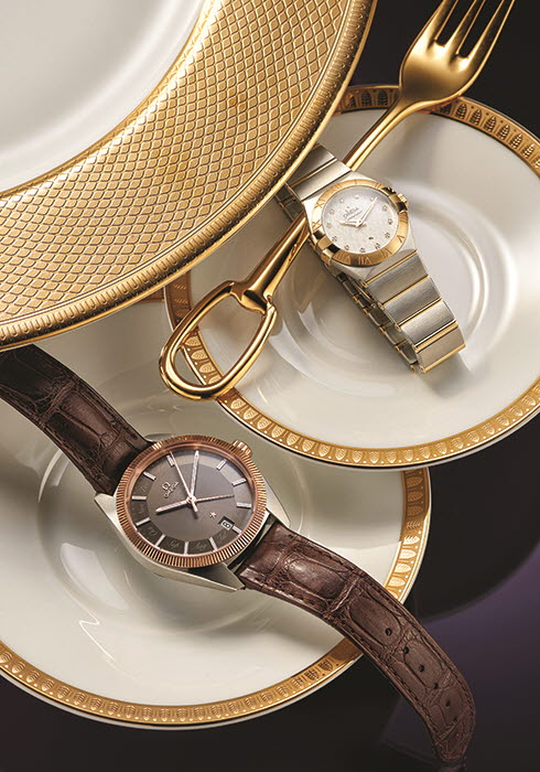 (위부터) 베스트셀러 여성 워치 중 하나로, 우아하고 클래식한 세드나 골드 & 스틸 콤비 디자인이 돋보이는 컨스텔레이션 여성 워치 5백만원대, 클래식하고 중후한 멋을 드러내는 그레이 컬러의 다이얼, 깔끔한 바 인덱스와 세드나 골드 베젤의 조화가 멋스러운 글로브 마스터 애뉴얼 캘린더 남성 워치 1천3백만원대 모두 오메가. 문의 02-511-5797