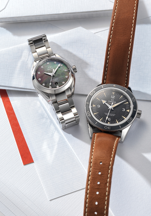 (왼쪽부터) 품격 있는 오토매틱 워치의 매력을 느낄 수 있는 씨마스터 아쿠아테라 레이디스 8백만원대, 커플 워치의 클래식인 씨마스터 300 워치 7백만원대 모두 오메가.