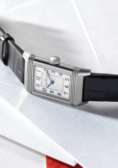 예거 르쿨트르 리베르소 클래식 케이스를 손으로 살짝 밀면 인그레이빙한 뒷면을 볼 수 있는 드라마틱한 워치. 메시지를 새길 수도 있다. 34mm 스몰 사이즈 5백만원대.