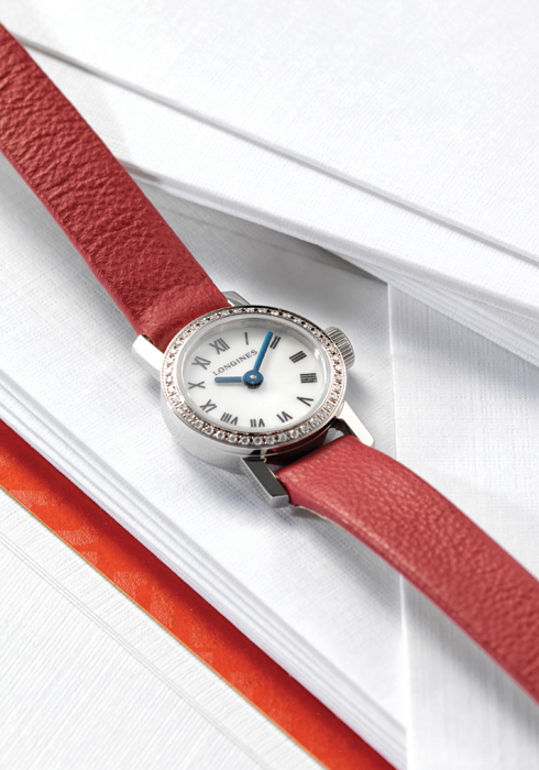 론진 미니 케이스 사이즈가 16mm에 불과한 미니 워치. 머더오브펄 다이얼과 42개의 다이아몬드 세팅, 컬러풀한 스트랩으로 여성미를 강조한다. 1백만원대.