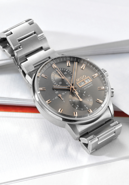 미도 커맨더 크로노그래프 칼리버 60 사회생활의 시작을 더 멋지게 빛나게 해줄 실용적인 디자인의 크로노그래프 워치. 스틸 소재의 브레이슬릿과 골드빛이 감도는 다이얼이 매력적이다. 2백51만원.