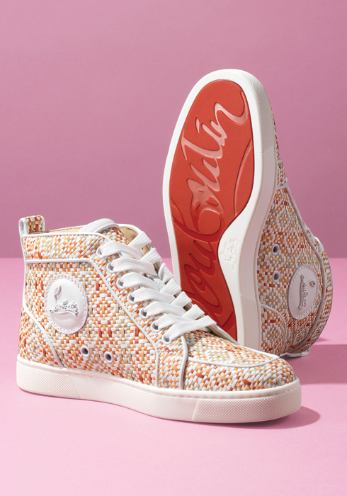 손으로 엮은 듯 섬세한 터치가 엿보이는 산뜻한 컬러의 하이톱 스니커즈 1백39만원 크리스찬 루부탱.