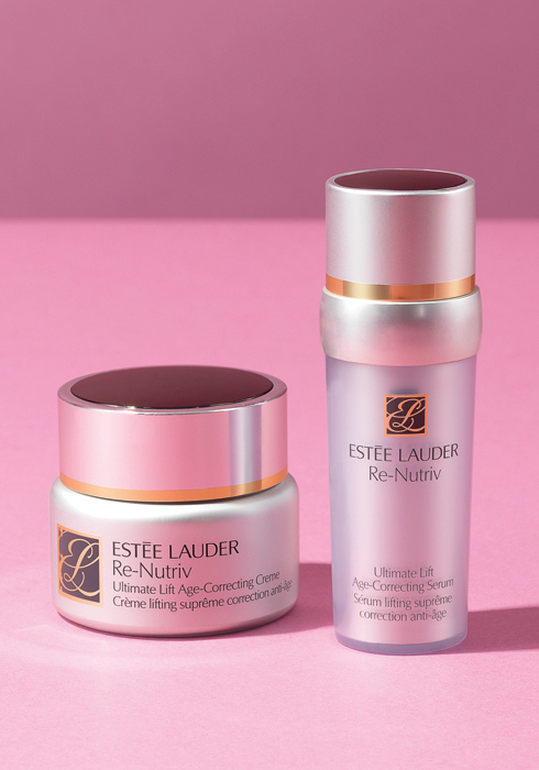(왼쪽부터) 리-뉴트리브 얼티미트 리프트 에이지-코렉팅 크림 50ml 39만원대, 리-뉴트리브 얼티미트 리프트 에이지-코렉팅 세럼 30ml 39만원대 모두 에스티 로더.