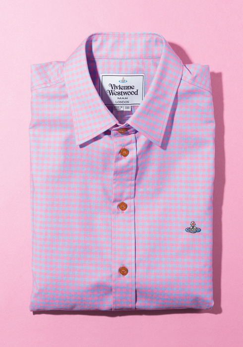 블루와 핑크 컬러의 체크 패턴 셔츠는 칙칙한 얼굴에 생기를 돌게 한다. 소재의 촉감도 뛰어나다. 73만원 비비안 웨스트우드.