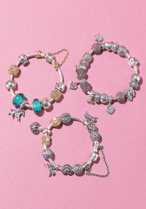 리본, 하트, 말 등 다양한 모티브와 컬러풀한 원석, 레터링이 적힌 참이 달린 실버 주얼리 각 2백만원대 모두 판도라.
